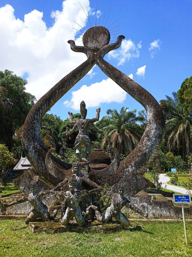 It was hot and humid. One of the key reasons why I did not find many tourists in the Buddha Park (also known as Xieng Khuan), an unusual yet enchanting place, located about 25km outside of the capital Vientiane on the mighty river Mekong. Before my arrival in Laos, I had already included the park in my itinerary and I was glad I made it. Xieng Khuan means Spirit City. The park is home to more than 200 Hindu and Buddhist statues. The park has also numerous flora and fauna. This park was built in 1958 by an alleged priest-shaman called Luang Pu Bunleua Sulilat. This park has now become a major tourist attraction in Laos. Many consider it a holy place, which contains statues of bizarre demons, humans, and mythological creatures. Give at least one hour to this park, which you can visit by bus, tuktuk, or taxi. However, I used a bus from the Talat Sao bus station. The bus will drop you in front of the park and it will cost you only USD3. And you can return to the city by using the same bus. Inside the park, one can find small restaurants. It is advisable to bring a water bottle along with you. If you have any questions related to this park, please feel free to ask me.