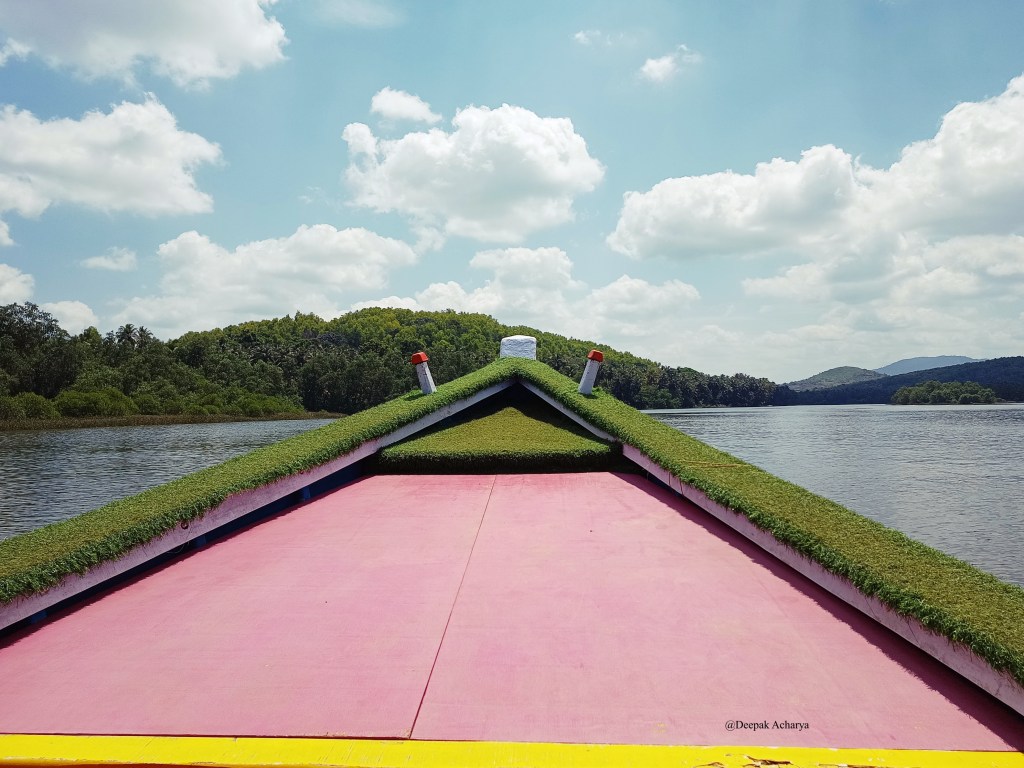 As I was touring Uttara Kannada, I decided to take a boat ride on the mighty Sharavati River in Honnavar, a port town in Coastal Karnataka. I took a bus from Kumata (where I was staying) and reached Honnavara after approximately 40 minutes. After getting down, I immediately approached an auto driver, who agreed to take me to the River, where boating takes place. He charged Rs100 for one and half km distance. Once I reached the river, I met a guy, who quickly arranged a boat for me. After mild negotiations, I agreed to give Rs1,100 for one hour journey. The first time I saw the river, I felt like I was in heaven. The sky was crystal clear and there were hundreds of coconut trees welcoming me on the banks of river Sharavati. It was a hot and humid day but I was prepared for it because it is expected to be so during summer in Karnataka. Slowly and slowly, I started to enjoy the ride. The whole one hour journey took me to many beautiful spots of the River. It is a must-do activity if you are planning to visit Honnavar.