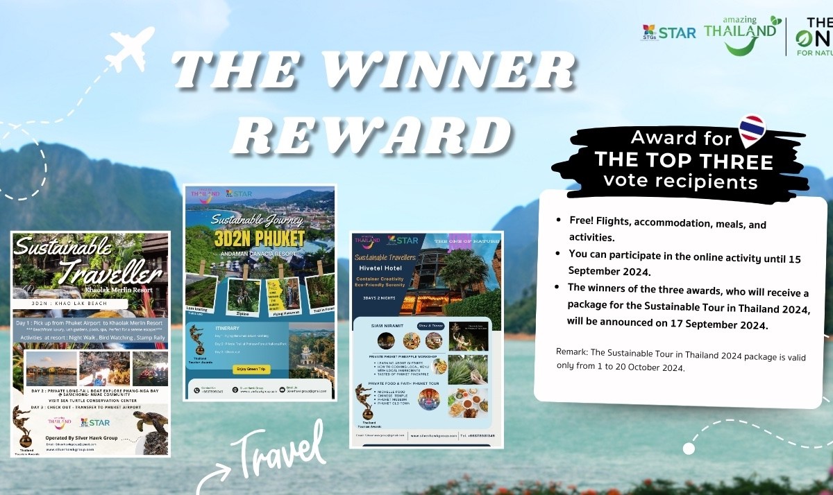 To further boost awareness of Thailand’s sustainable tourism direction, travelers are invited to join an online activity for a chance to win a three-day/two-night sustainable tour package in Thailand. There are three prize packages, one in Khao Lak, Phang-nga, and two in Phuket. Each includes round-trip flight tickets for two (international and/or domestic), accommodation, meals, and activities.