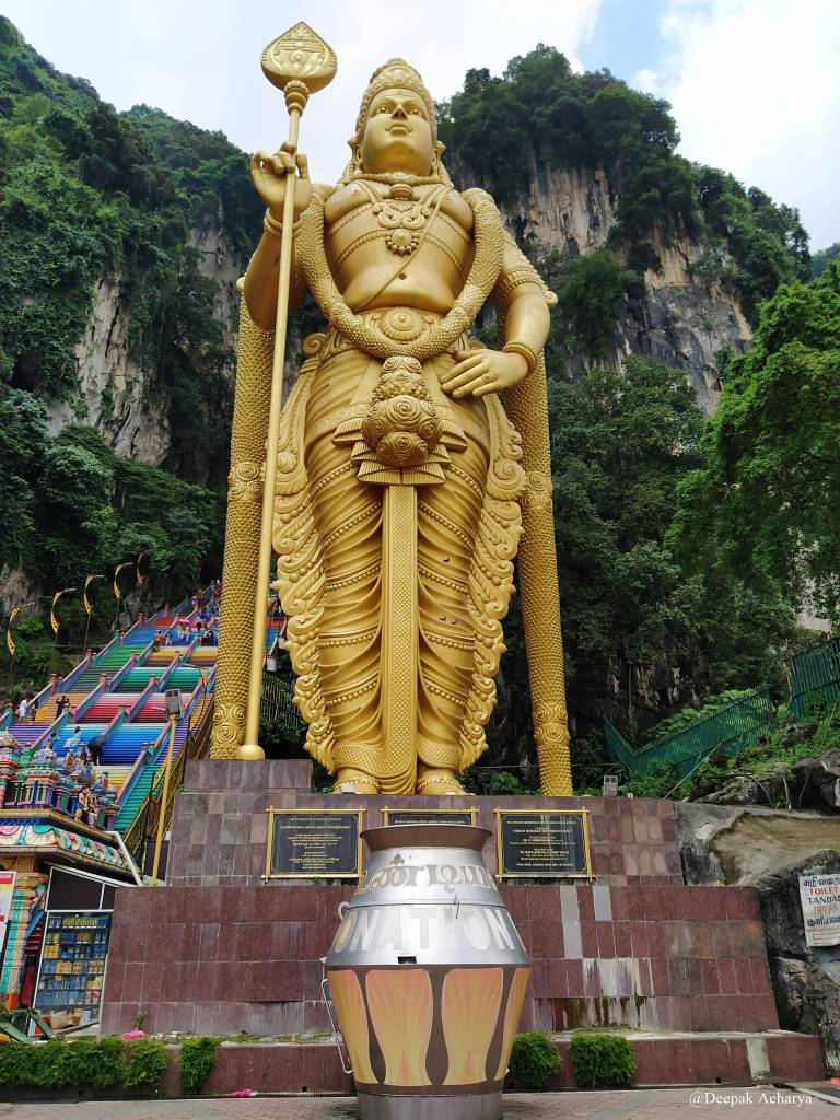 One has to climb up the 272 steps to reach the top of the caves. The famous Murugan Statue is located at the foot of the Cave. The 42.7 meter statue is the tallest statue in Malaysia.
